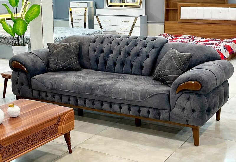 بسیار نمادین با دکمه‌دوزی عمیق، دسته‌های گرد و پشتی کوتاه. معمولاً با چرم لوکس یا مخمل روکش می‌شوند. طراحی متقارن آن، با دسته‌ها و پشتی هم‌ارتفاع، حس لوکس بودن و ظرافت را القا می‌کند. اگر به دنبال یک مبل لوکس و جاودانه هستید که نقطه کانونی شیک اتاق شما باشد، چسترفیلد انتخاب بسیار خوبی است. به بودجه و فضای موجود خود توجه کنید.